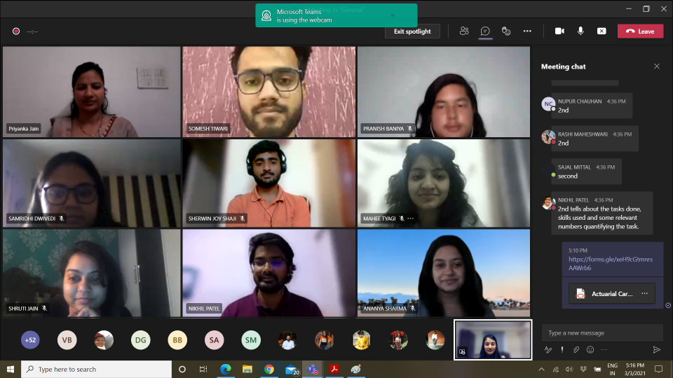 So far my experience and network within the actuarial fraternity has been really helpful for both students and working professionals to get jobs and steer through challenging situations.